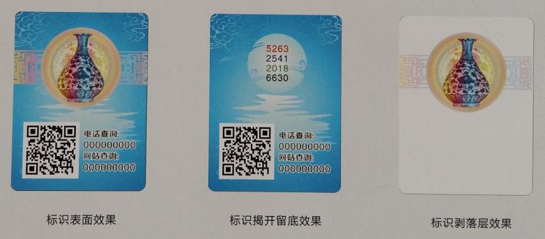 揭開標識表層,圖文信息留于被貼物上,而分離后的激光全息膜無法再次復原粘貼,數碼圖文信息與激光全息完全分離,無法復原,標識整體破壞,徹底杜絕再次使用。
