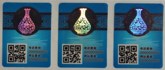 全息定位標簽不僅具有可變二維碼、防偽查詢碼等數碼防偽功能,而且還有雙向定位的激光全息防偽圖,標簽的綜合防偽性能高,提高造假者門檻。