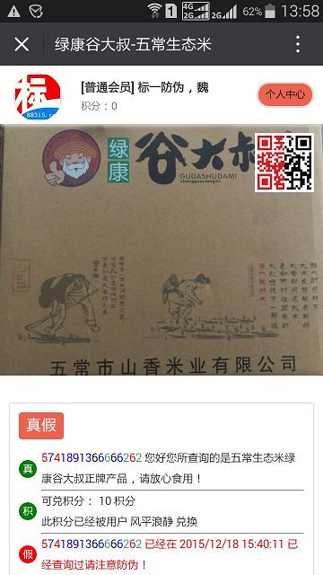 谷大叔有機大米防偽與質量追溯案例