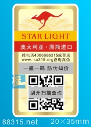 進入專用的防偽查詢平臺網站,比如www.k315.net或www.88315.org,按提示輸入防偽碼,即可查詢相應的真偽信息。當然更好的方式是用企業自己的網站比如:pepsi.k315.net,標一提供相應的技術支持,讓你們的客戶進入你們自己網站查詢,增強客戶的信任感。