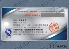 樣標分別為:激光防偽標,電話防偽標,二維碼防偽標,防偽吊牌