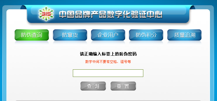 (3)網站防偽標簽查詢,網站查詢是目前使用最多的一種查詢方式,標一防偽不僅提供公共的查詢網站平臺www.k315.net,而且可以為企業免費接入其官方網站,方便查詢。