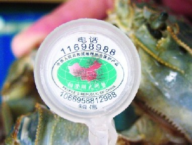 為了避免其他大閘蟹冒充陽澄湖大閘蟹,陽澄湖大閘蟹每年都更換防偽指環(huán) ,今年的防偽指環(huán)將正面的背景色改成了綠色,指環(huán)上方標(biāo)著防偽查詢電話,下方標(biāo)著短信查詢號碼,背面則是網(wǎng)狀的密封格,揭開后是一個查詢編碼。據(jù)介紹,這個編碼是每只蟹子一個,而且整個防偽指環(huán)是一次性的,必須要撕毀后才能取下,以防被二次使用。