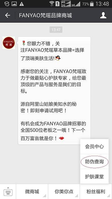 進入公眾號微平臺,在右下角有防偽查詢,點擊進入