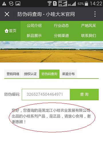 目前,應用企業微信公眾號或訂閱號進行防偽查詢是非常普遍而且非常有效的防偽方式,為了更好的展現企業形象,提升客戶的信任度,企業可以把公眾號的防偽查詢與官網的防偽查詢綁定在同一頁面中。標一防偽提供全面的技術支持,一般要求是企業官網有相應的手機網頁,目的是為了提升用戶體驗。具體案例如下: