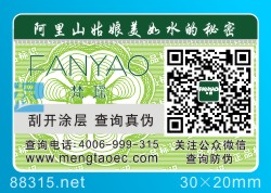阿里健康,碼上放心追溯平臺防偽標簽覆碼印刷制作